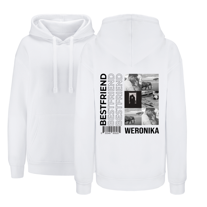 Bluza damska z kapturem BEST FRIEND KOLAŻ Biała L
