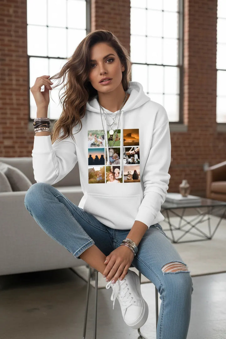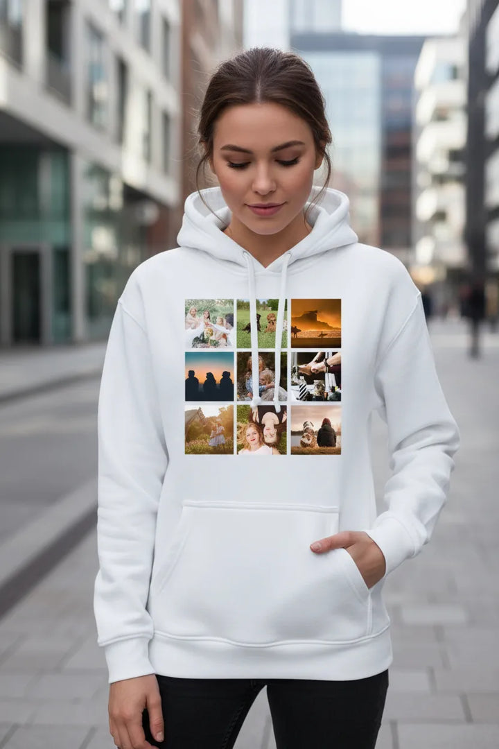 Bluza damska z kapturem KOLAŻ 9 ZDJĘĆ Biała XS