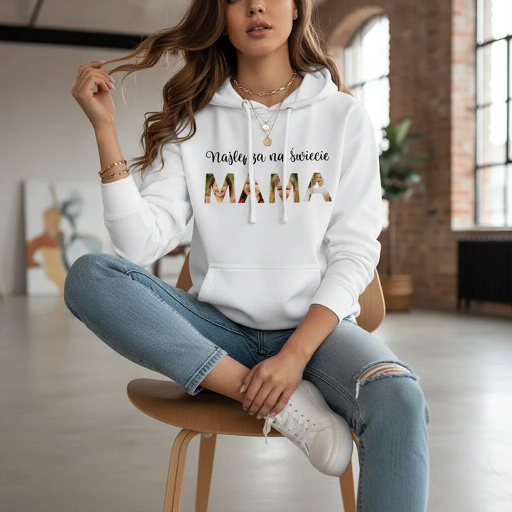 Bluza damska z kapturem NAPIS MAMA Biała L