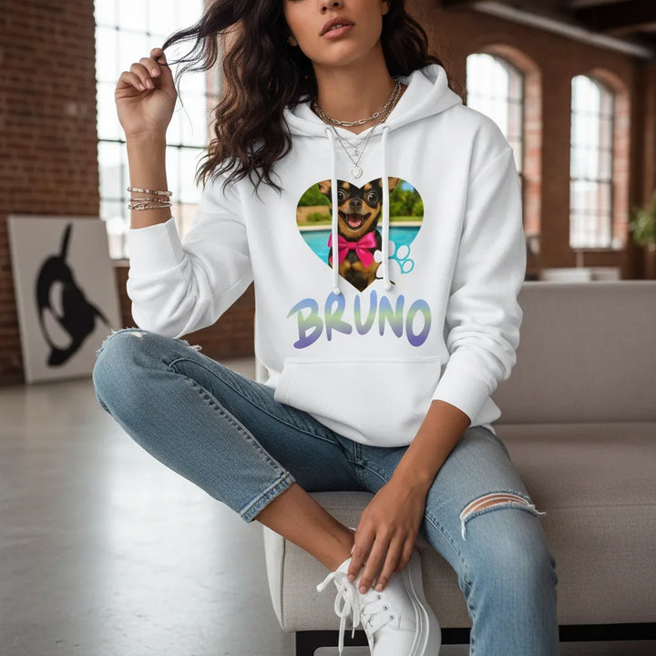 Bluza damska z kapturem ZDJĘCIE PSA Z GRADIENTEM Biała XXL