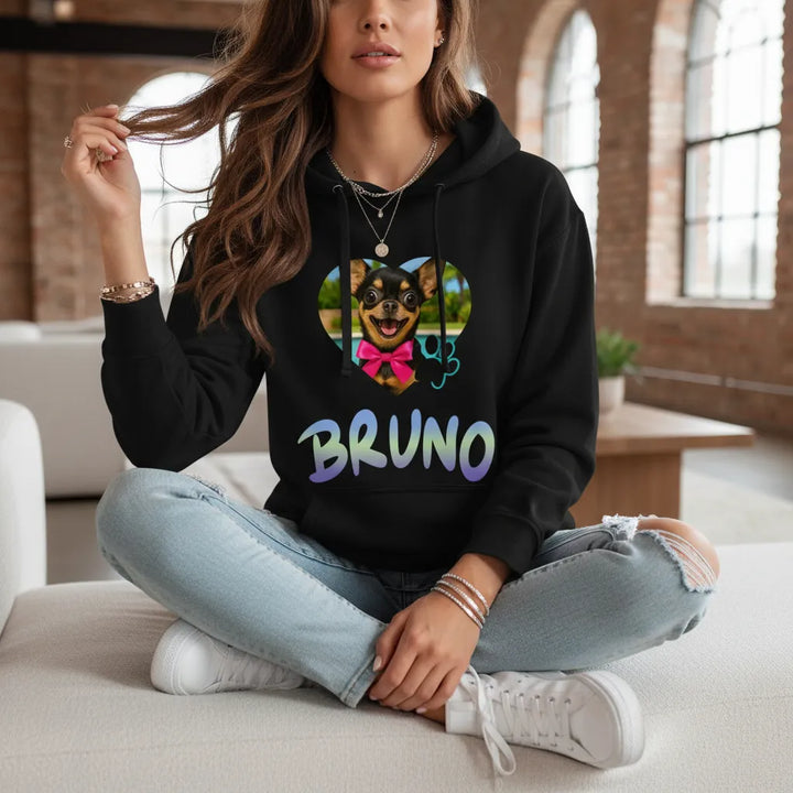 Bluza damska z kapturem ZDJĘCIE PSA Z GRADIENTEM Czarna L