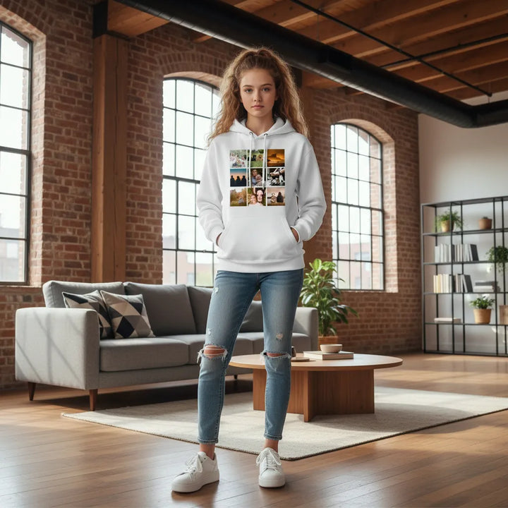 Bluza dziecięca z kapturem KOLAŻ 9 ZDJĘĆ Biała 12-14