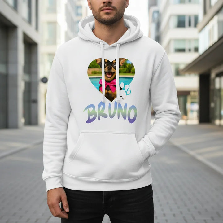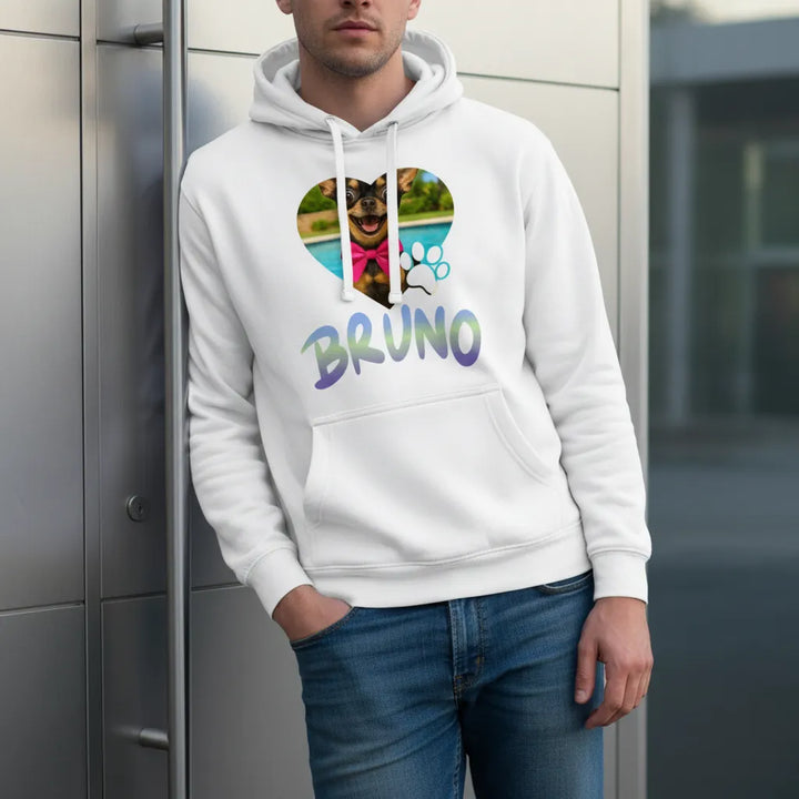 Bluza męska z kapturem ZDJĘCIE PSA Z GRADIENTEM Biała XS