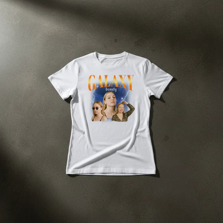 Koszulka personalizowana damska BOOTLEG - ZDJĘCIA NA TLE GALAXY Biała XL