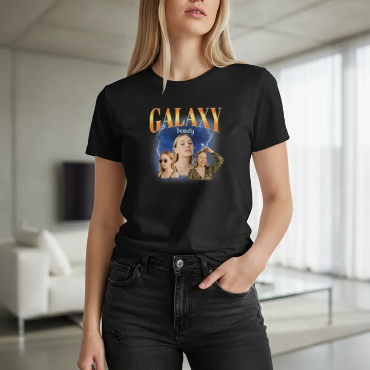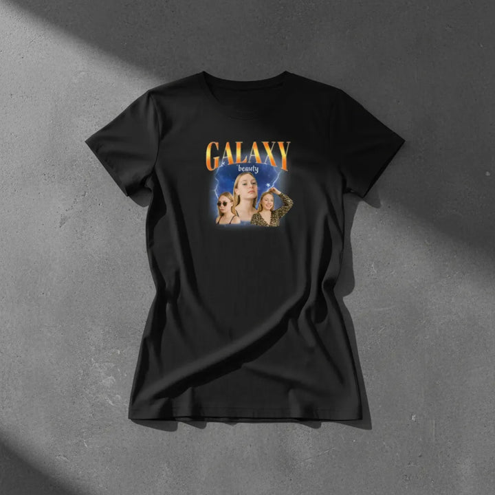 Koszulka personalizowana damska BOOTLEG - ZDJĘCIA NA TLE GALAXY Czarna S