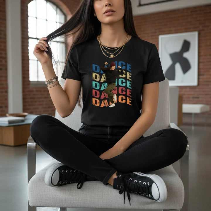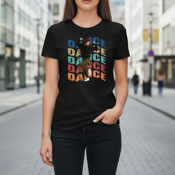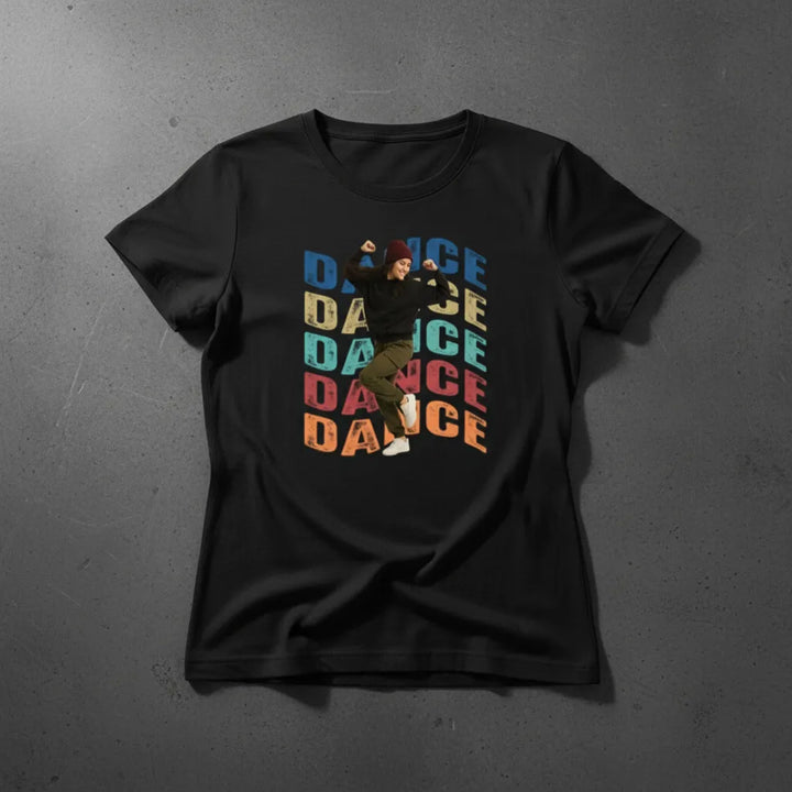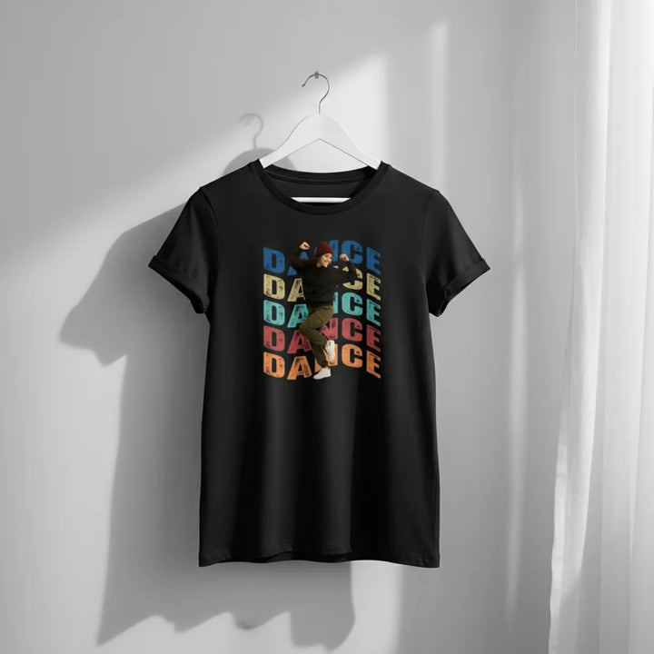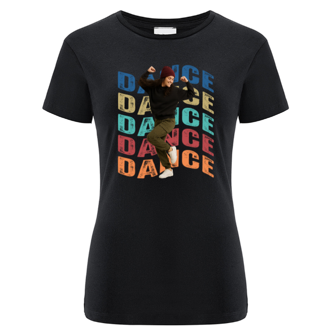 Koszulka personalizowana damska DANCE NAPIS KOLOROWY W TLE Czarna XS