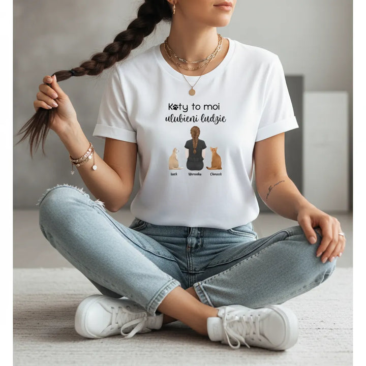 Koszulka personalizowana damska KOTY TO MOI ULUBIENI LUDZIE Biała XXS