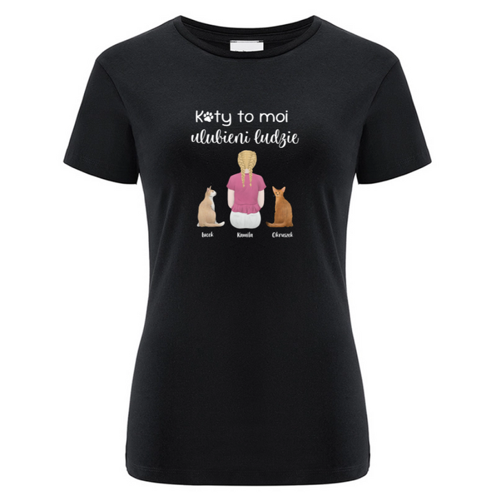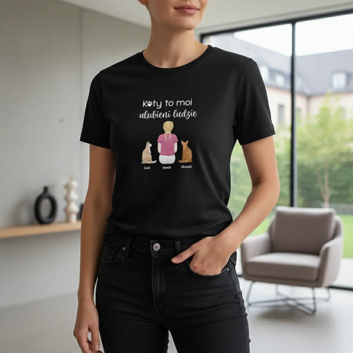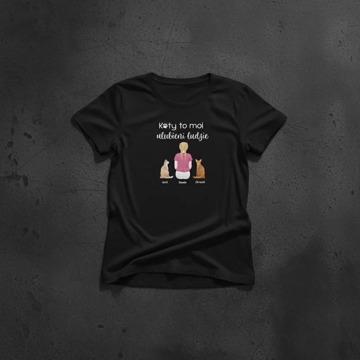 Koszulka personalizowana damska KOTY TO MOI ULUBIENI LUDZIE Czarna XS