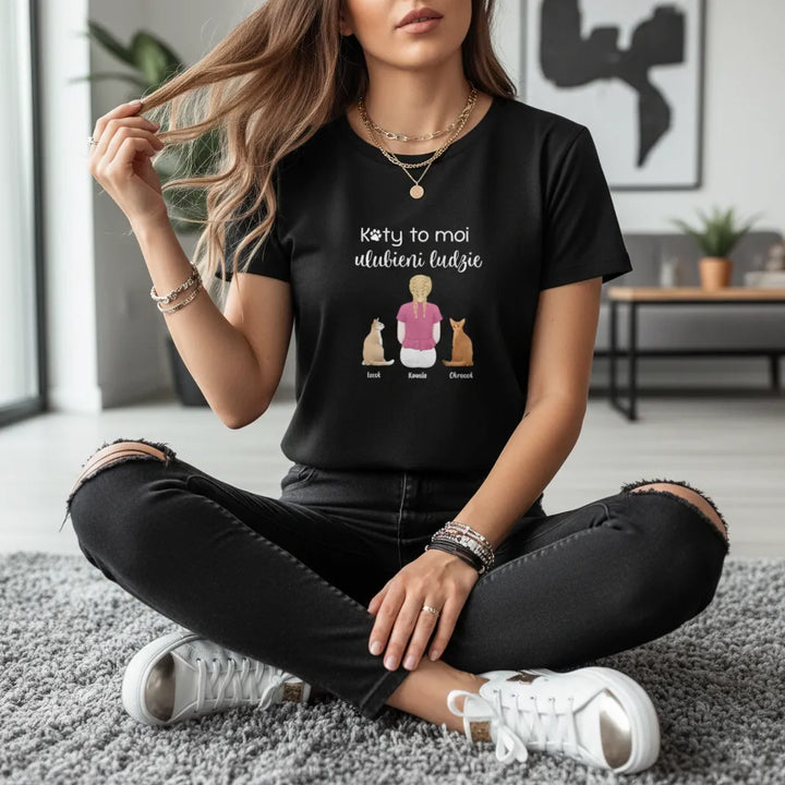Koszulka personalizowana damska KOTY TO MOI ULUBIENI LUDZIE Czarna XXS