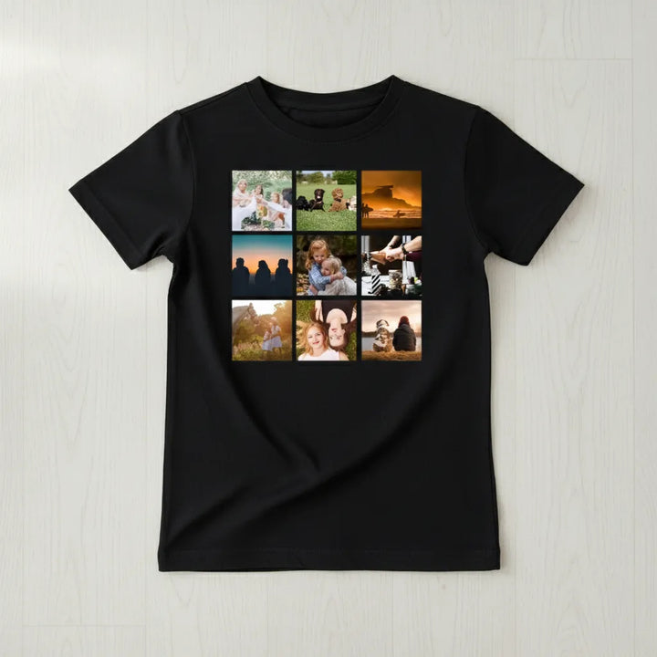 Koszulka personalizowana dziecięca KOLAŻ 9 ZDJĘĆ Czarna 3-4