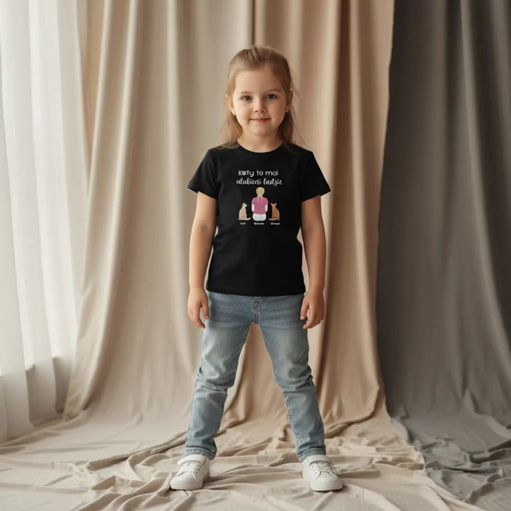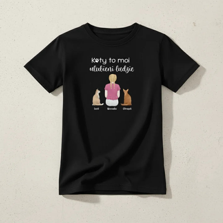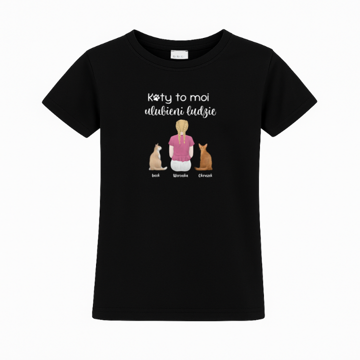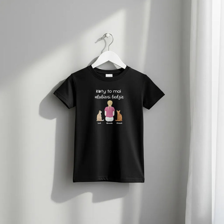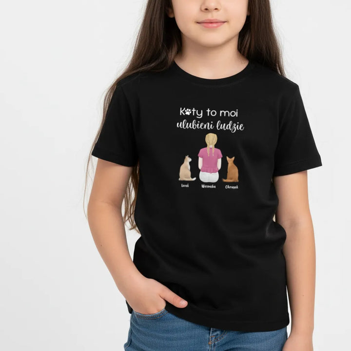 Koszulka personalizowana dziecięca KOTY TO MOI ULUBIENI LUDZIE Czarna 9-11