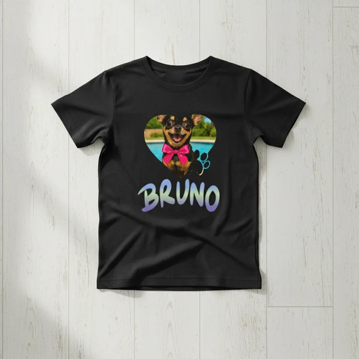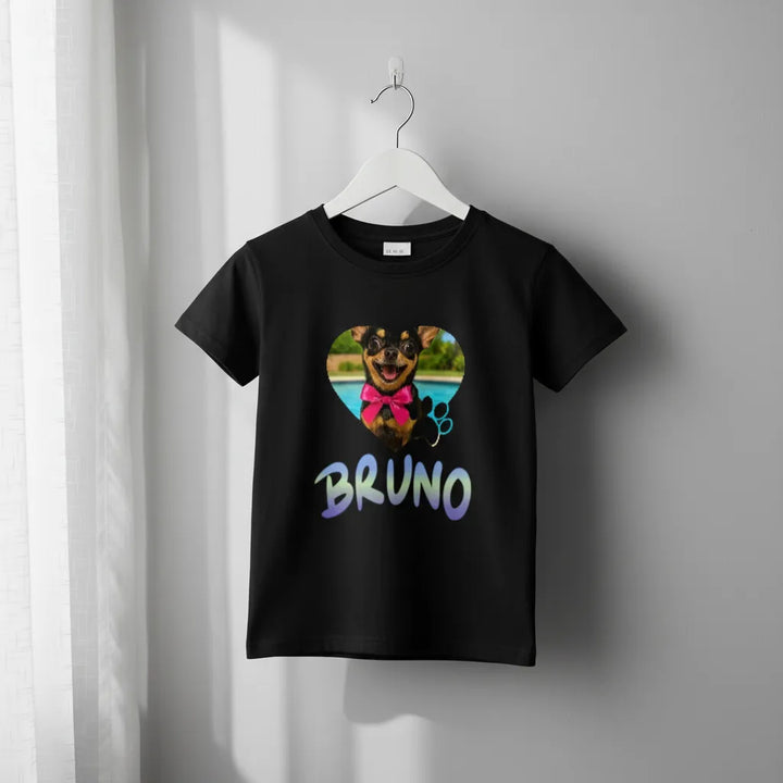 Koszulka personalizowana dziecięca ZDJĘCIE PSA Z GRADIENTEM Czarna 12-14