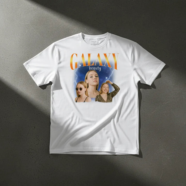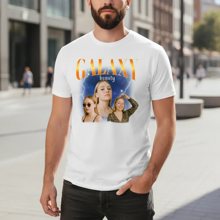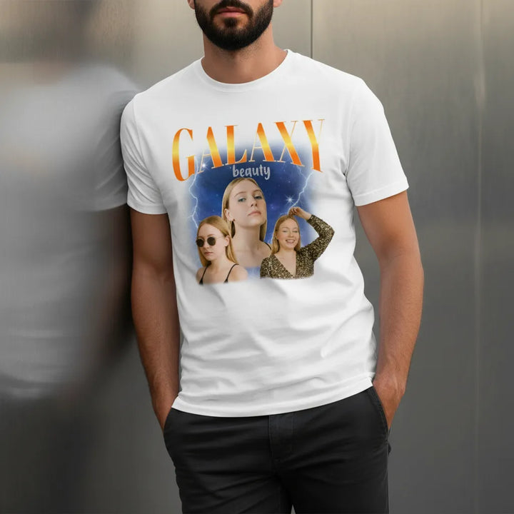 Koszulka personalizowana męska BOOTLEG - ZDJĘCIA NA TLE GALAXY Biała XL